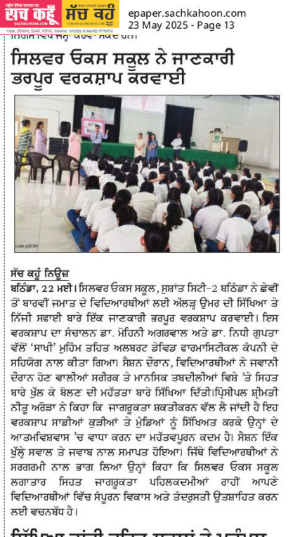 Delivered a talk on 22nd May among school students on ‘HPV awareness and vaccination: need of the hour’ at Silver Oak school, Sushant City 2, Bhatinda under ageis of ISCCP. It was attended by around 300-350 students who were very inquisitive with lots of queries regarding vaccination.