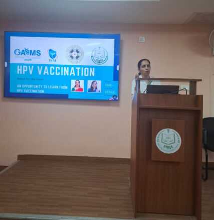 A very informative and interactive lecture “Gender neutral HPV vaccination” was taken by Dr Aruna Nigam followed by rapid fire round by Dr Nidhi Gupta, along with open mic competition on topic “HPV vaccination in males” on the 25th of April’25 in hybrid mode. It was attended by around 300 undergraduates, Gynae postgraduates, Senior Residents and faculty. All the winners were given prizes.